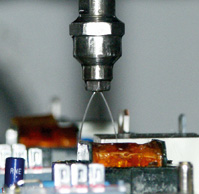 breakdowns under unfavourable environmental conditions. Applied on either one or on both sides of the electronic cards, the protective lacquer gives an isolation of different potencies as