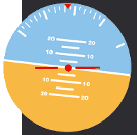 geneigt ist. Die Position der Horizontlinie zur Richtmarkierung entspricht der des tatsächlichen Horizonts. Somit informiert dieses Instrument über den Anstellwinkel und die Schräglage des Flugzeugs.